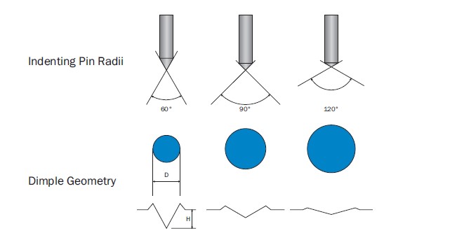 The indenting pin hardness properties are directly proportional to the component’s hardness. Therefore, a harder material demands a harder indenting pin. However, the upper limit of metal hardness you can mark with the method is approximately 63 HRC.
