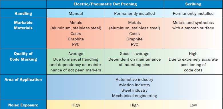 The dot peening marking system is very effective in deep marking due to the successive hits. However, the method depends highly on material hardness, support tooling, and stylus properties.